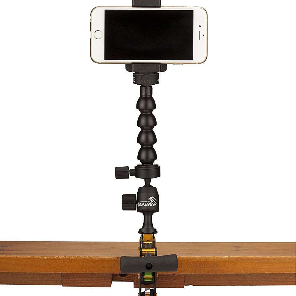 フレキシブルネックを2-3本つなげての利用も可能です。耐荷重は800g。