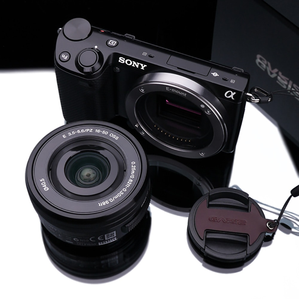 本革仕様のSONY 16-50mm用のレンズキャップカバー