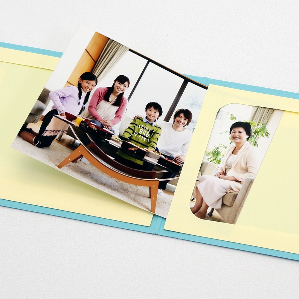 Lサイズ写真がヨコ位置で2枚収納できる2面仕様。