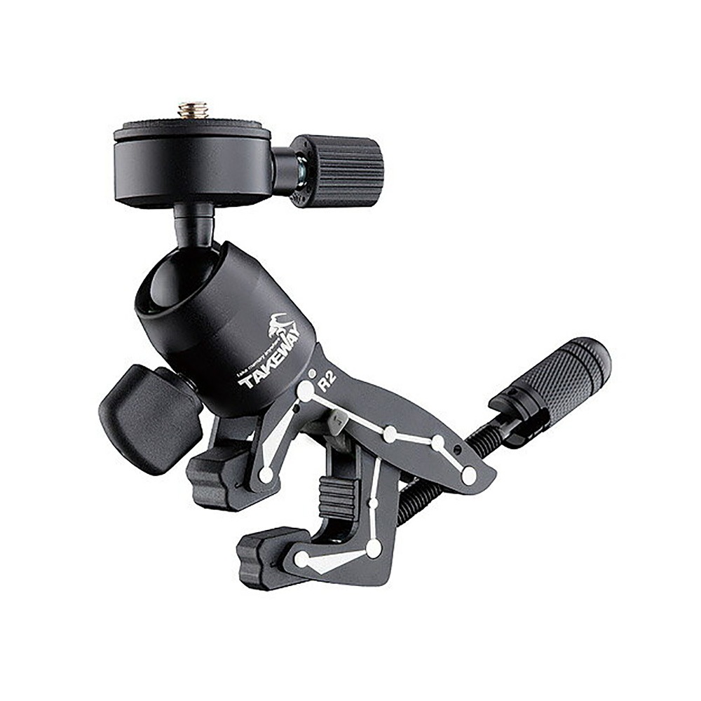 従来製品TAKEWAY R1レンジャークランプにボール雲台機能を付加したのが新製品のR2レンジャークランプです。