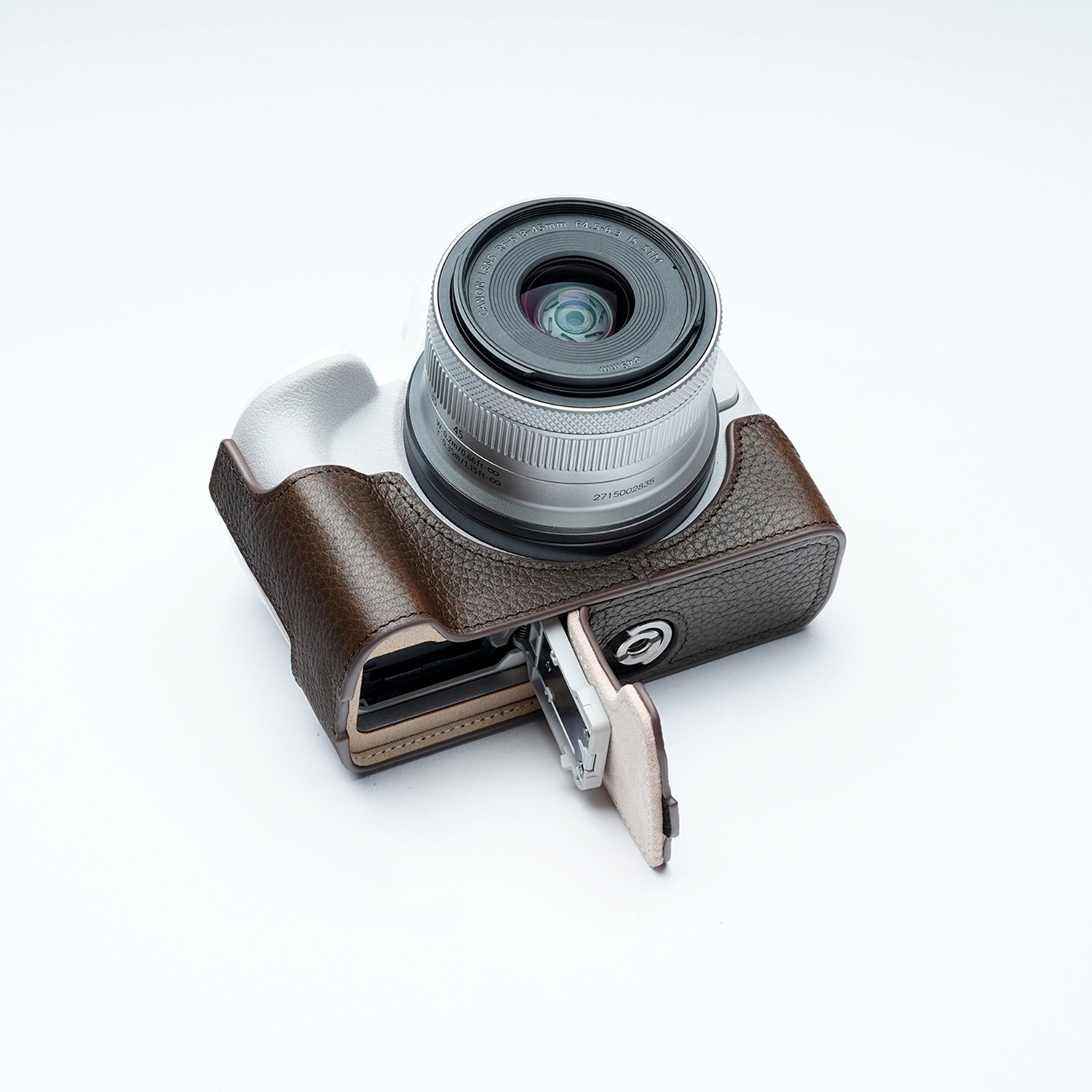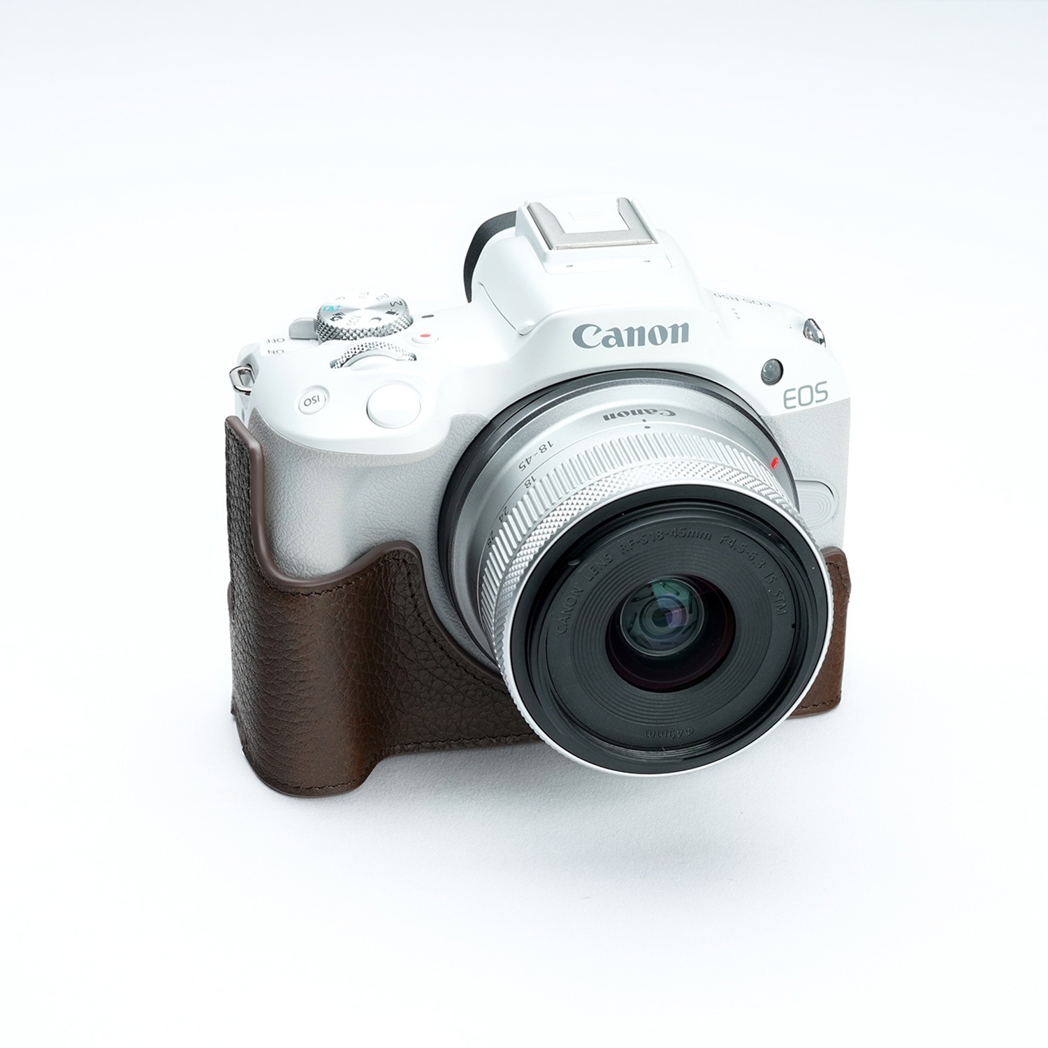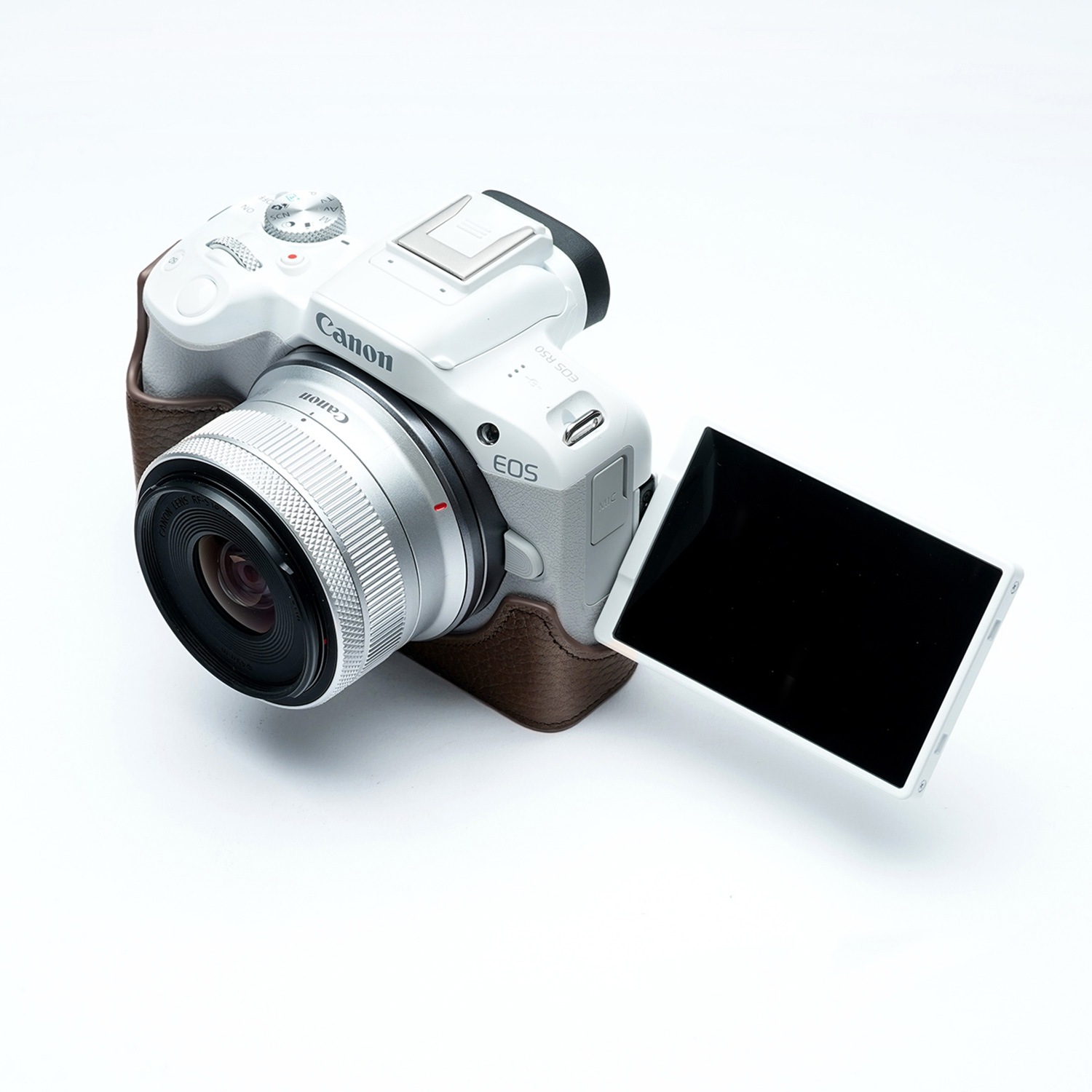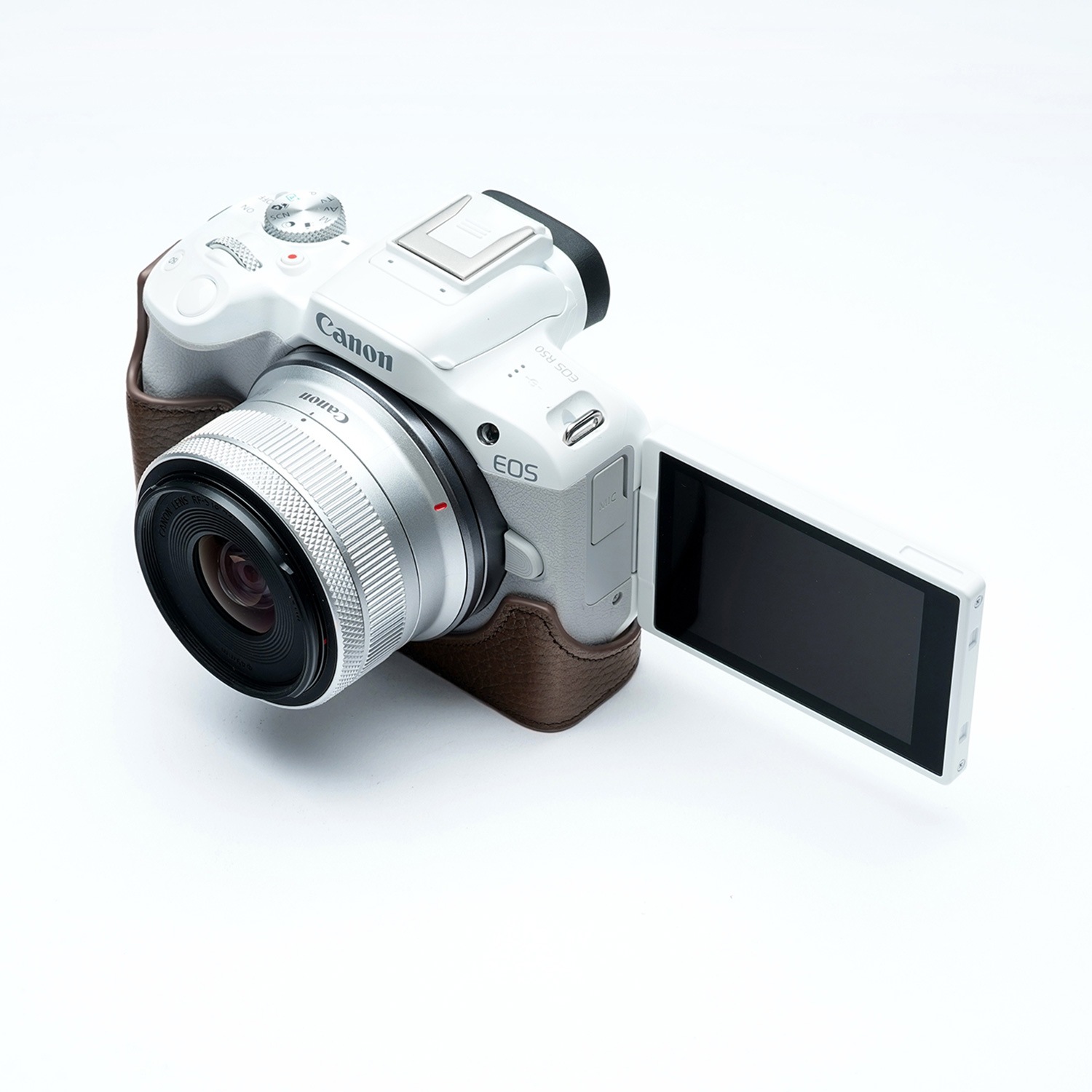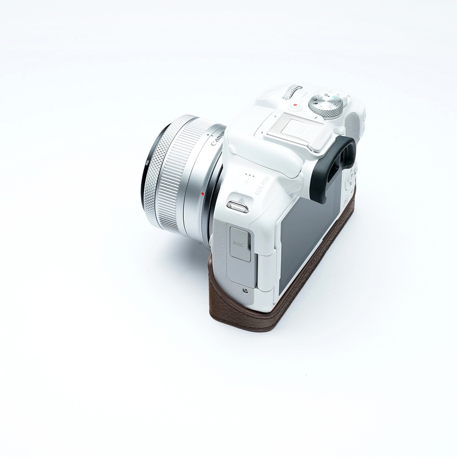- Canon EOS R50用、レザーボディーハーフケース。