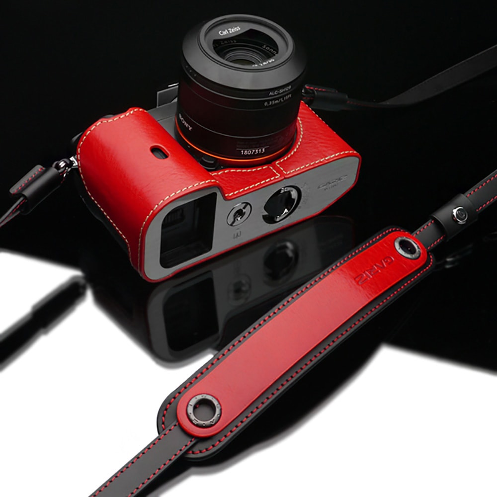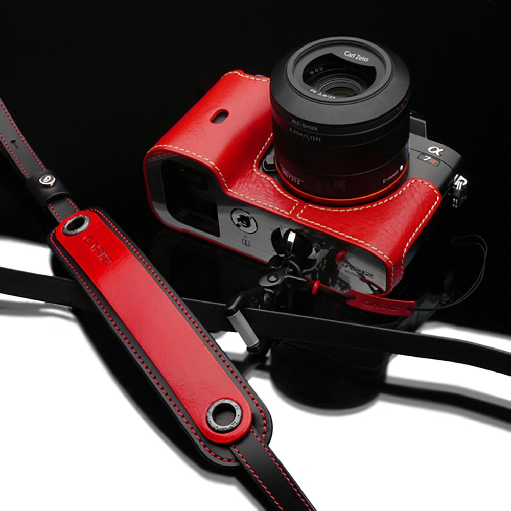 GARIZ 本革カメラネックストラップ XS-CHLSRB2 レッド